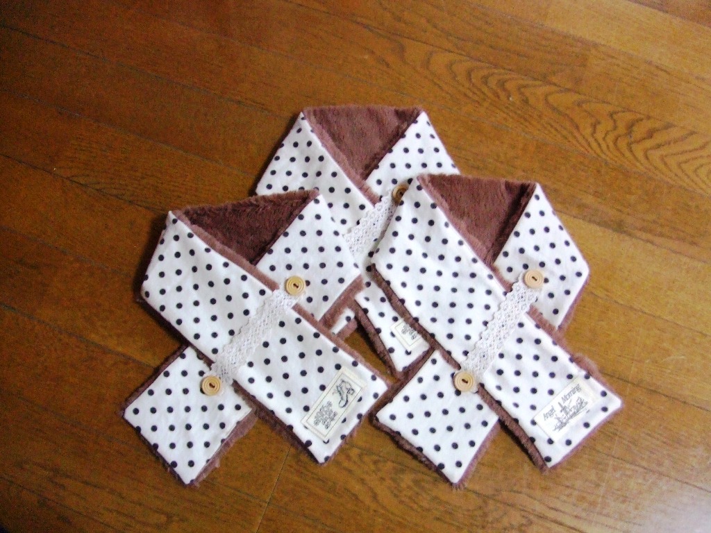去年、sanに作ったマフラーと同じ生地で3枚。