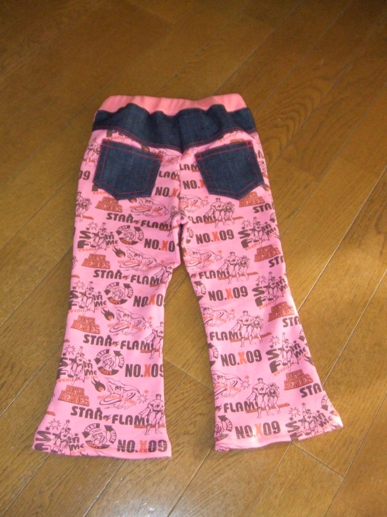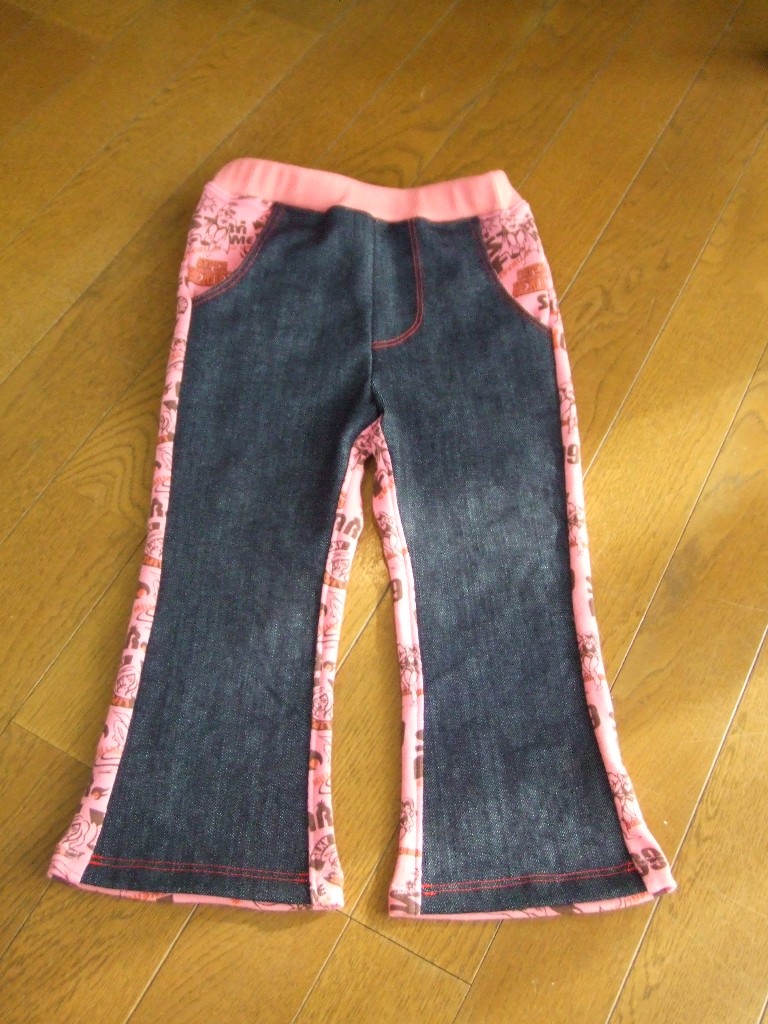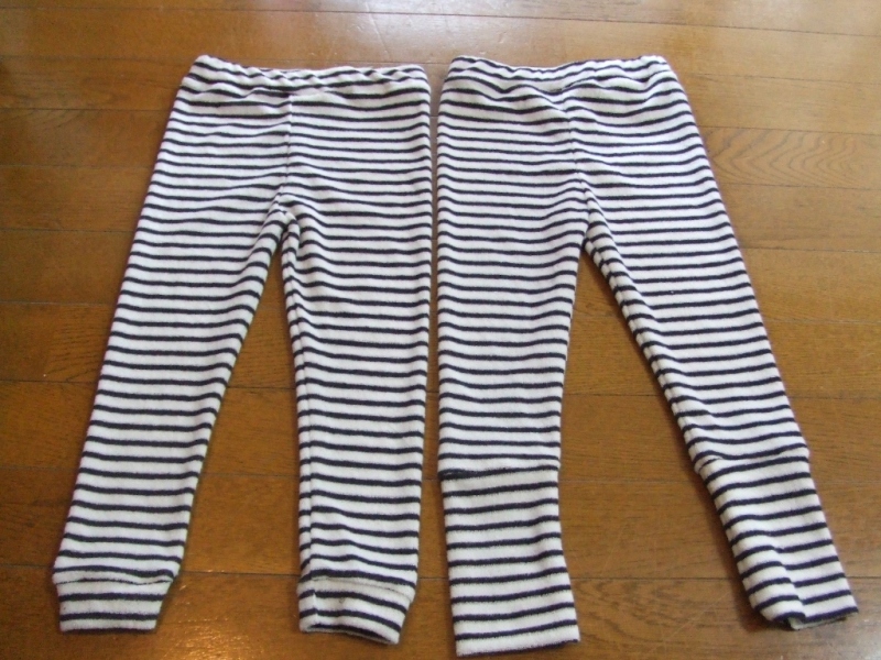 真ん中のは、100サイズでsanの脚の長さにあわせて間違って裁断してしまったものです。