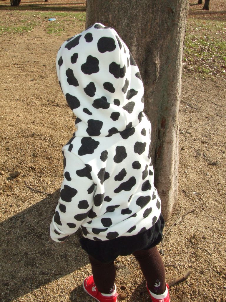 フード裏とポケットを同じ花柄の天竺にしていますが、全く見えていませんね。。