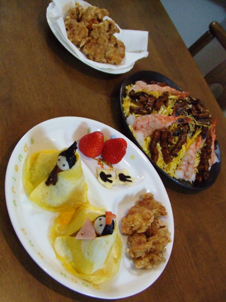 sanには、ちらし寿司で作った雛人形。
