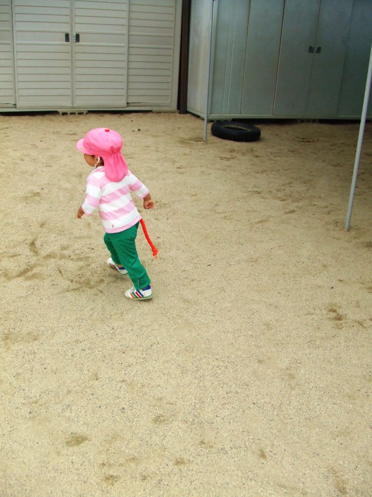 他のお友達と先生が移動しても、一人で違う場所へ走って行き、遊ぶ。